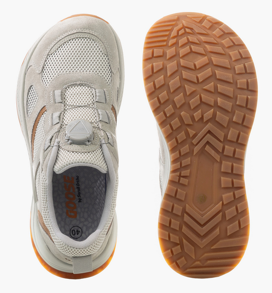 Особенностью моделей GOOSE является увеличенная ширина следа и объем в передней части. Обувь подойдет при увеличенной полноте стопы, деформациях пальцев и суставов, при Hallux Valgus. Стопа чувствует себя свободно, пальцы не сдавливаются, исчезают болезненность и дискомфорт. Анатомическая стелька поддерживает своды и разгружает стопу во время движения. Легкий перекат подошвы усиливает разгружающий эффект, способствует снижению болевых ощущений в переднем отделе стопы, облегчает ходьбу, снижает усталость. Амортизирующая подошва из пористого материала ЭВА поглощает ударные вибрации, а протектор из резины гарантирует устойчивость на гладких поверхностях. Данная модель очень легкая, подойдет для теплого сезона. Верх выполнен из комбинации натуральной кожи и сетчатого текстиля, что позволяет коже дышать, предотвращая потливость стоп.